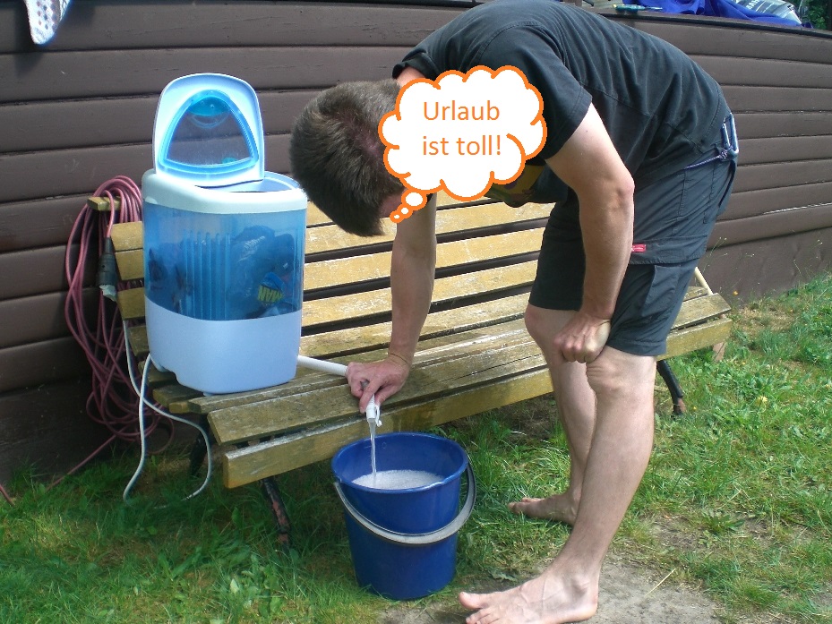 aufgestellt und mit Wasser befüllt worden war, wurde das Waschprogramm gestartet und für den jüngsten begann das „Fernsehprogramm“. Nachdem auch der zweite Waschgang mit frischem Wasser ohne Waschmittel durch war, musste die Wäsche aufgehängt werden. Jedoch vorher bedurfte es noch der Tätigkeit des Auswringens der Wäsche, welche von dem Büromenschen Kasper übernommen wurde.