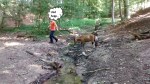 Auf ungefähr der Hälfte des Weges ist ein Bach, den ich sehr gerne mit einbaue in unsere Spaziergänge. Während Dotty in gewohnter Manier den Bach übersprang um ja nicht nass zu werden, hatte Baylies keine Bedenken nass zu werden.