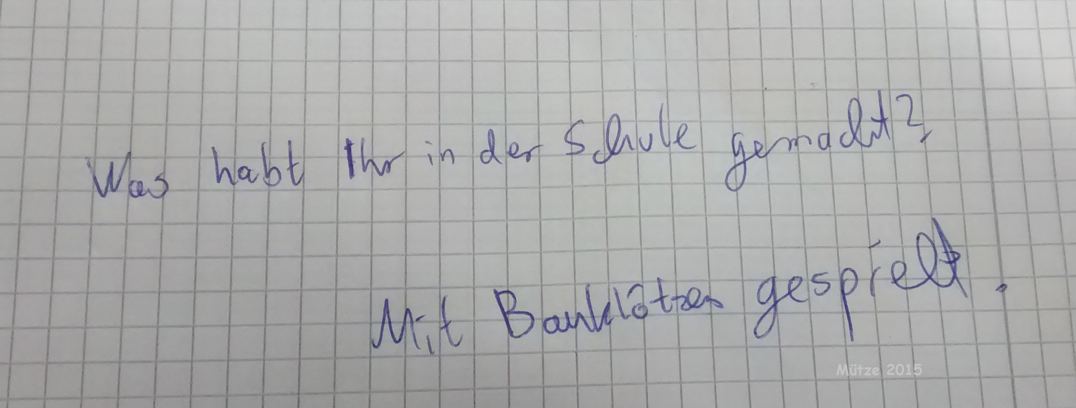 Wir sitzen im Deutsch Leistungskurs und was machen wir? Wir spielen mit Bauklötzen! Ja, Sie haben richtig gelesen. Bauklötze! Mein Tischnachbar konnte es sich nicht verkneifen, mich im Unterricht mit einer schriftlich Notiz da drauf aufmerksam zu machen.