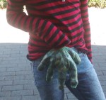 Meine Nichte war mit und vertrieb sich die Zeit mit Eicheln und Kastanien sammeln. Da wir selbst keine Tüte mit hatten, war eine der Tierarzthelferinnen so nett und hat ihr einen Untersuchungshandschuh geschenkt.