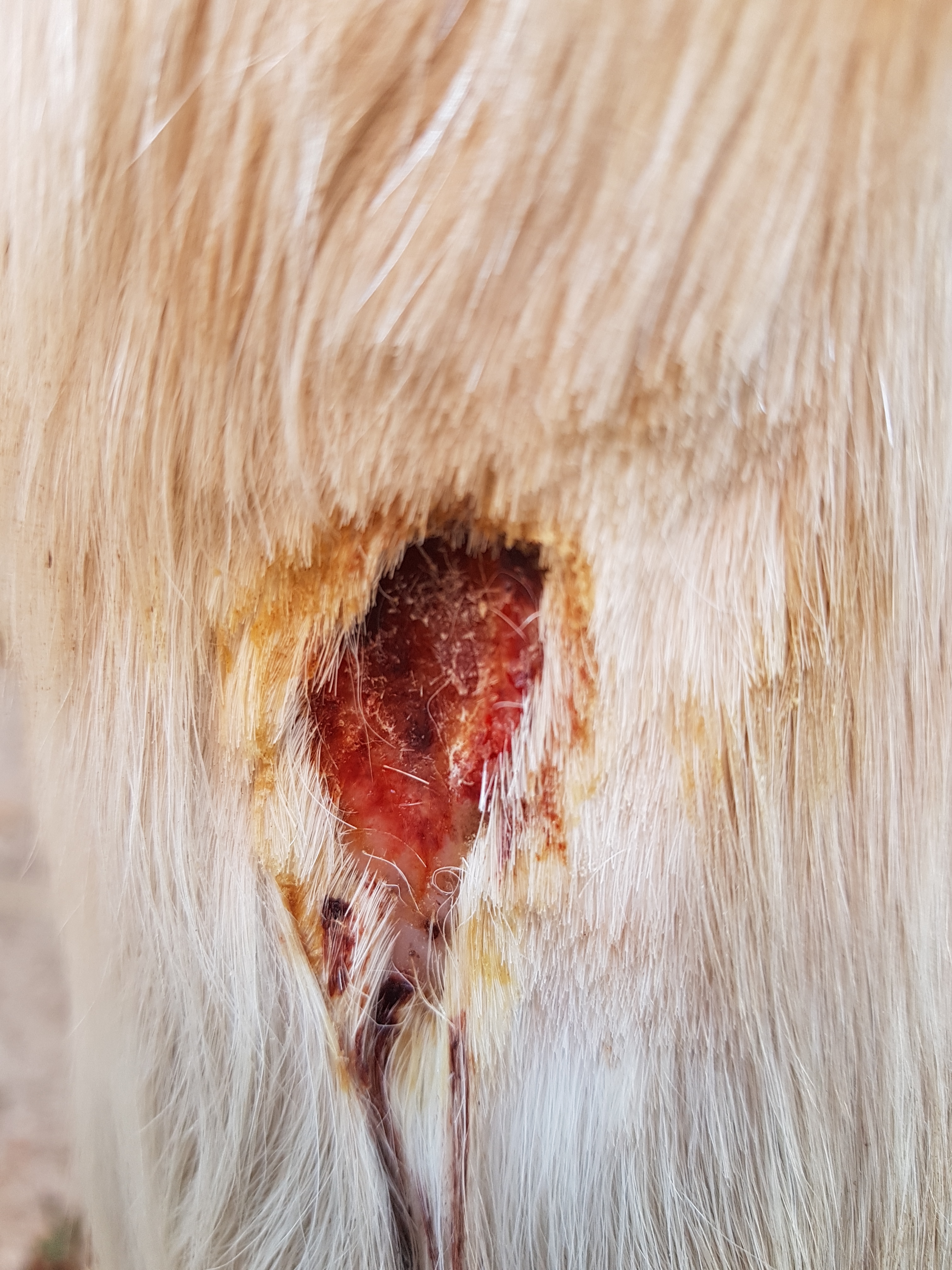 Der Tierarzt kam und es gab einmal Penicillin, so wie eine Salbe und einen stramm gewickelten Verband. Meine größte Sorge, dass es sich entzündet oder wildes Fleisch wächst.