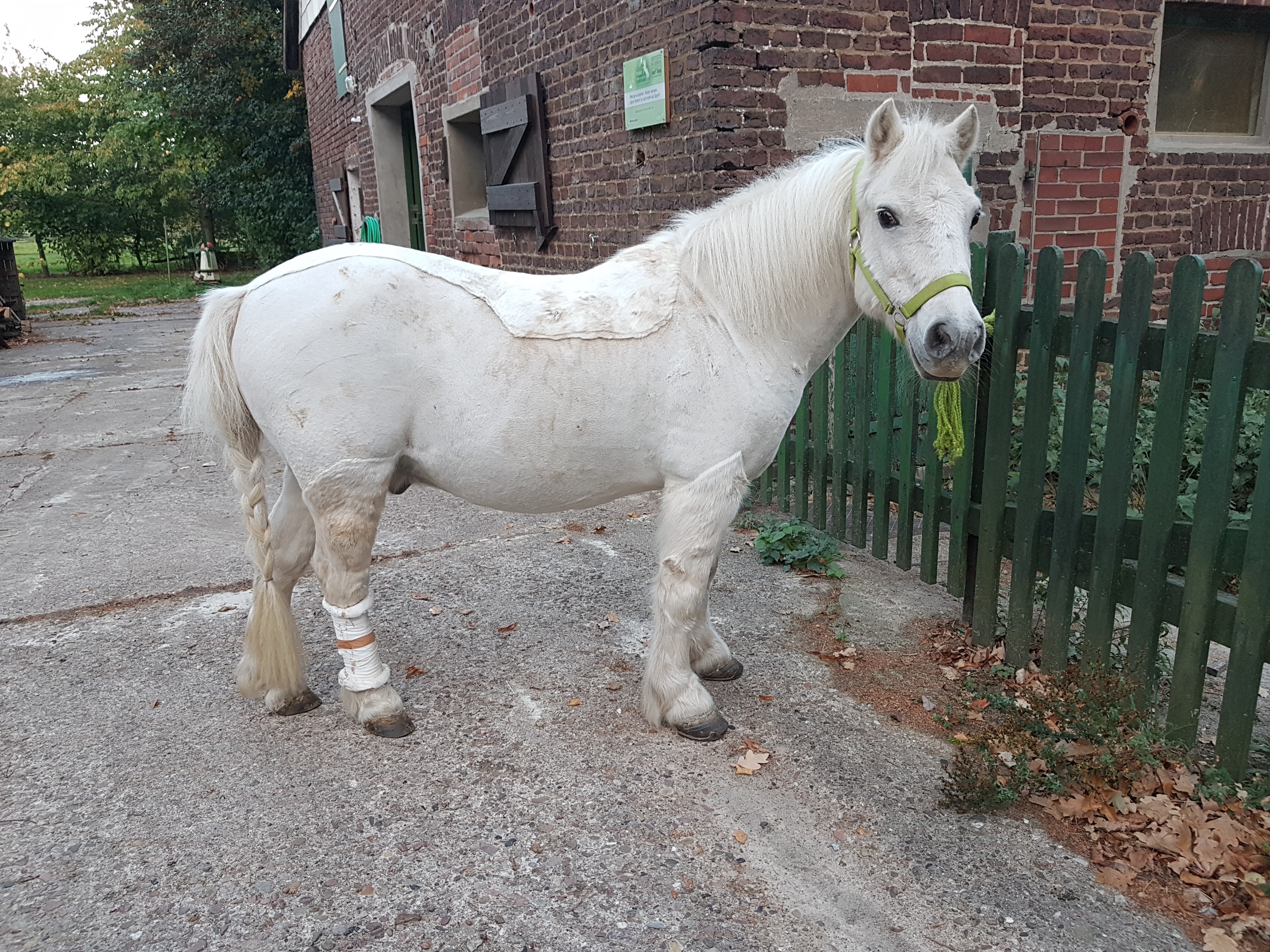Eigentlich sollten Cocco und Goldy zu einem schönen Herbstausritt gehen. Dieser platzte allerdings, als ich mir Coccos Bein näher anschaute. Ich vermute, da hat Goldy einmal kräftig gegen getreten. Die Haut war weg und ich war mich nicht sicher, ob man an einer Stelle den Knochen sehen konnte.