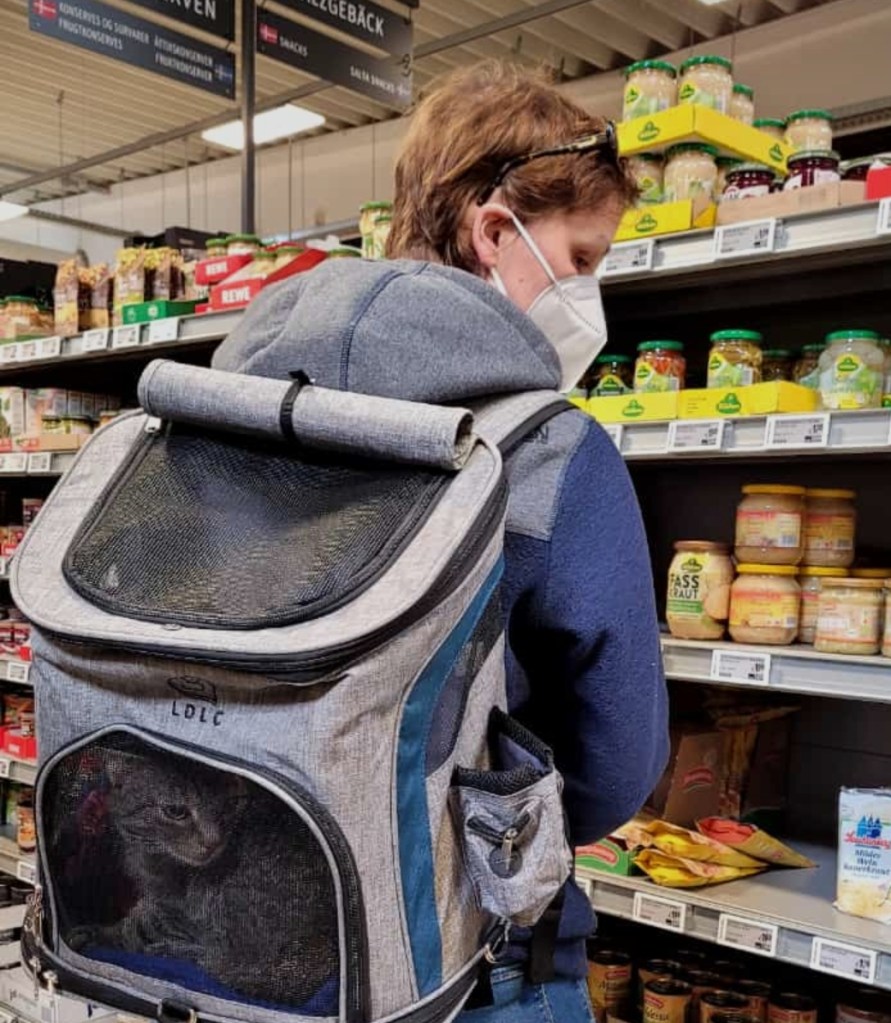 Umso schöner ist es dann zu sehen, dass Herine beim Fischladen allen gezeigt hat, dass eine Katze auch an der Leine ganz ruhig die Gegend anschauen kann und wenn Hunde kommen, freiwillig in ihren Rucksack geht.