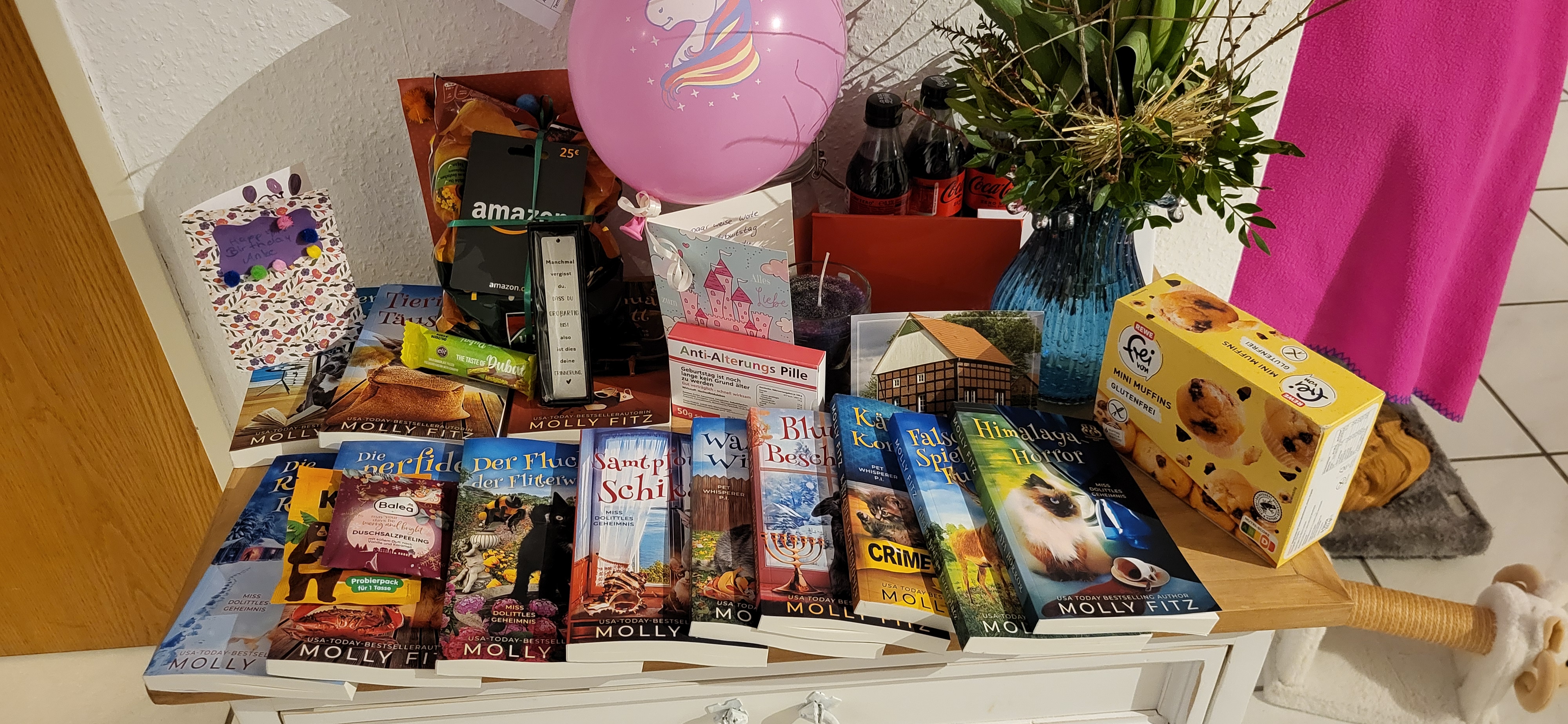 Da ich aus einer Buchreihe schon zwei Bücher hatte und insgesamt 18 Bände existieren, habe ich mich dafür entschieden, dass mir gerne die weiteren Bände geschenkt werden können.